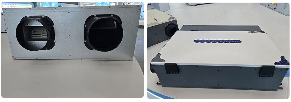 The fresh air unit has an independent exhaust and supply air system. Polluted air is exhausted to the outside through exhaust vents, exhaust ducts and exhaust fans, while fresh outdoor air is supplied to the room through supply fans, supply ducts and supply vents. It uses special materials to reduce noise, has a thickened outer layer and is processed in one piece to ensure corrosion resistance and structural stability.