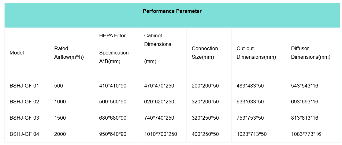 | Model | Rated Airflow(m³/h) | HEPA Filter